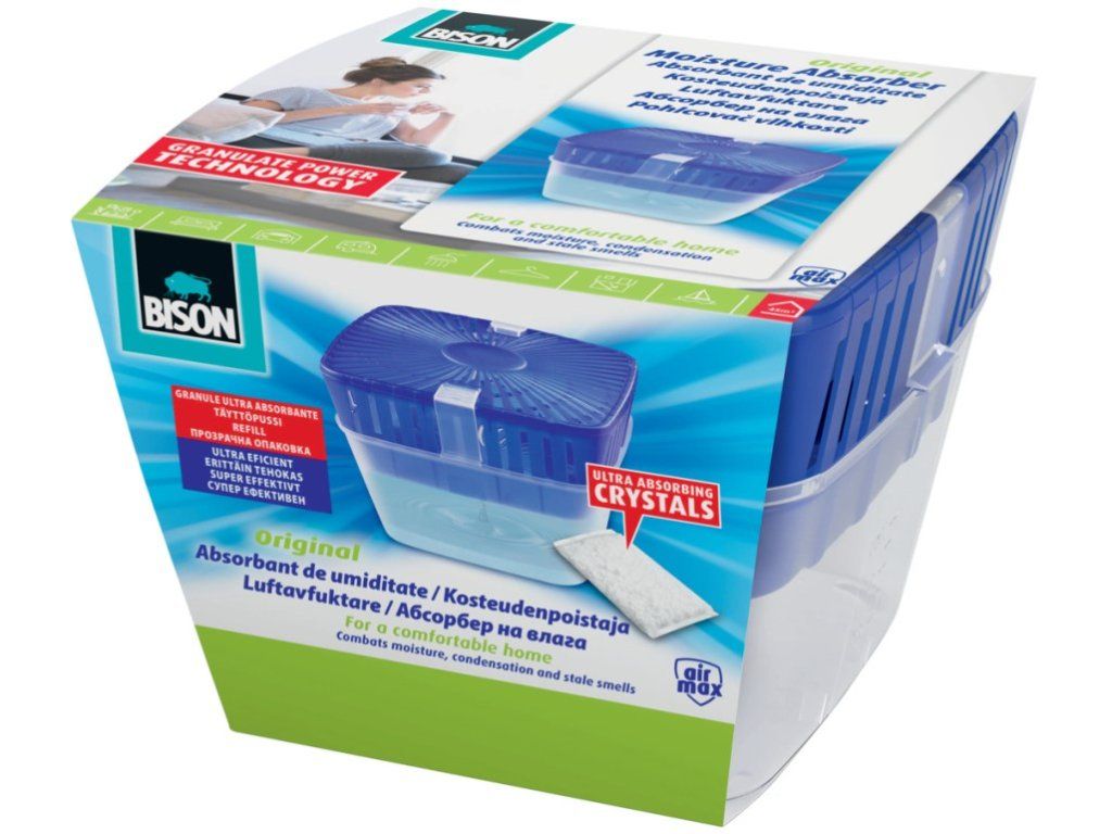 Гранулите за абсорбиране на влага абсорбират излишната влага от въздуха до нормалното ниво, което е 50 - 60%. Кристалите постепенно се разтварят, докато абсорбират влагата. Абсорбираната влага се оттича в контейнера, а патентованото затваряне предотвратява обратното ѝ изтичане. По този начин абсорбаторът предотвратява образуването на мухъл, петна и корозия. Работи целогодишно, икономичен е и може да се пълни отново. ОБЛАСТ НА УПОТРЕБА: Абсорбатор на влага - за изсушаване на стаи, кухни, санитарни зони, кемпери и др. ИНСТРУКЦИИ ЗА УПОТРЕБА: Отворете абсорбатора на влага и разрежете торбата вътре. Извадете платнената торба и я поставете върху пластмасовите издатини на абсорбатора. Поставете капака - готово! Задържаната влага постепенно се оттича в контейнера на дъното на абсорбатора. Благодарение на практичната дюза, тази влага може лесно да се отстрани, като се излее в канализацията (не вреди на околната среда). С ново икономично пълнене, абсорбаторът на влага може да продължи да работи.Допълнителни параметри