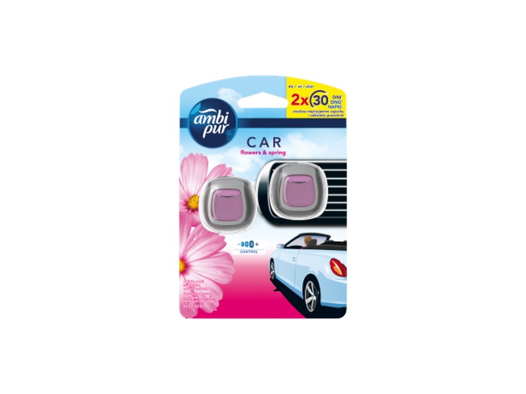 Osvěžovač vzduchu do auta Ambi Pur s technologií OdourClear nepřetržitě odstraňuje nepříjemné vytrvalé zápachy z vašeho auta a zanechává lehkou svěží vůni po dobu až 70 dnů. Vůně Flowers & Spring naplní váš domov jiskřivou osvěžující vůní, která evokuje první jarní sluneční paprsky dopadající na něžná poupata květin. Oproti většině ostatních osvěžovačů vzduchu do auta, které zápach většinou jen překrývají, osvěžovač do auta Ambi Pur pachy skutečně eliminuje a zanechává jen nádhernou svěží vůni. Jedná se o malý nenápadný osvěžovač vzduchu, který se jednoduše připevní ke klimatizaci vozidla; díky nové a jedinečné technologii OdourClear osvěží vaše auto a zbaví ho i nejvytrvalejších pachů, například z jídla, domácích mazlíčků, kouře nebo odpadků. Pomocí kolečka na boku můžete dokonce nastavit intenzitu vůně. Osvěžovač vzduchu do auta Ambi Pur se snadno používá, pracuje bez baterie nebo elektřiny a vydrží až 30 dnů, abyste mohli vy i posádka spokojeně dýchat. Vyzkoušejte kompletní řadu nových výrobků Ambi Pur s jedinečnou technologií OdourClear, například osvěžovač textilií Ambi Pur pro odstraňování zápachu z textilních materiálů vašeho automobilu nebo osvěžovače vzduchu Ambi Pur Air či Ambi Pur Small Spaces pro váš domov. Vyzkoušejte také elektrický osvěžovač vzduchu 3volution pro nepřetržitou eliminaci zápachu po dobu až 90 dnů.