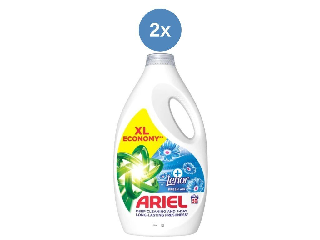 Ariel Plus gel Fresh Air 2.25 л / 50 бр. е течен перилен препарат, предназначен за ежедневно пране, който съчетава силното почистващо действие на Ariel с дълготрайния свеж аромат на Lenor.