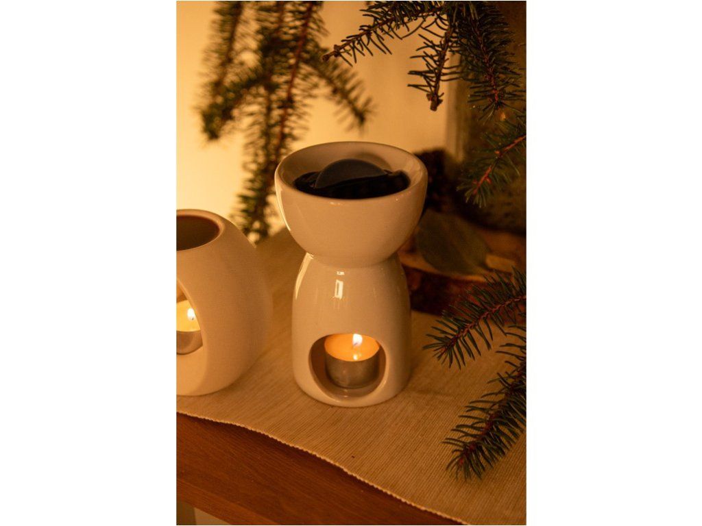 Тази аромалампа е изработена от висококачествена керамика и е идеална за създаване на приятна атмосфера във вашия дом. Аромалампите са чудесни за употреба с етерични масла или восъци, а благодарение на стилния си дизайн, те служат не само като практичен инструмент за ароматизиране на пространството, но и като декоративен елемент. Размерите ѝ са 94x156 мм.Допълнителни параметри