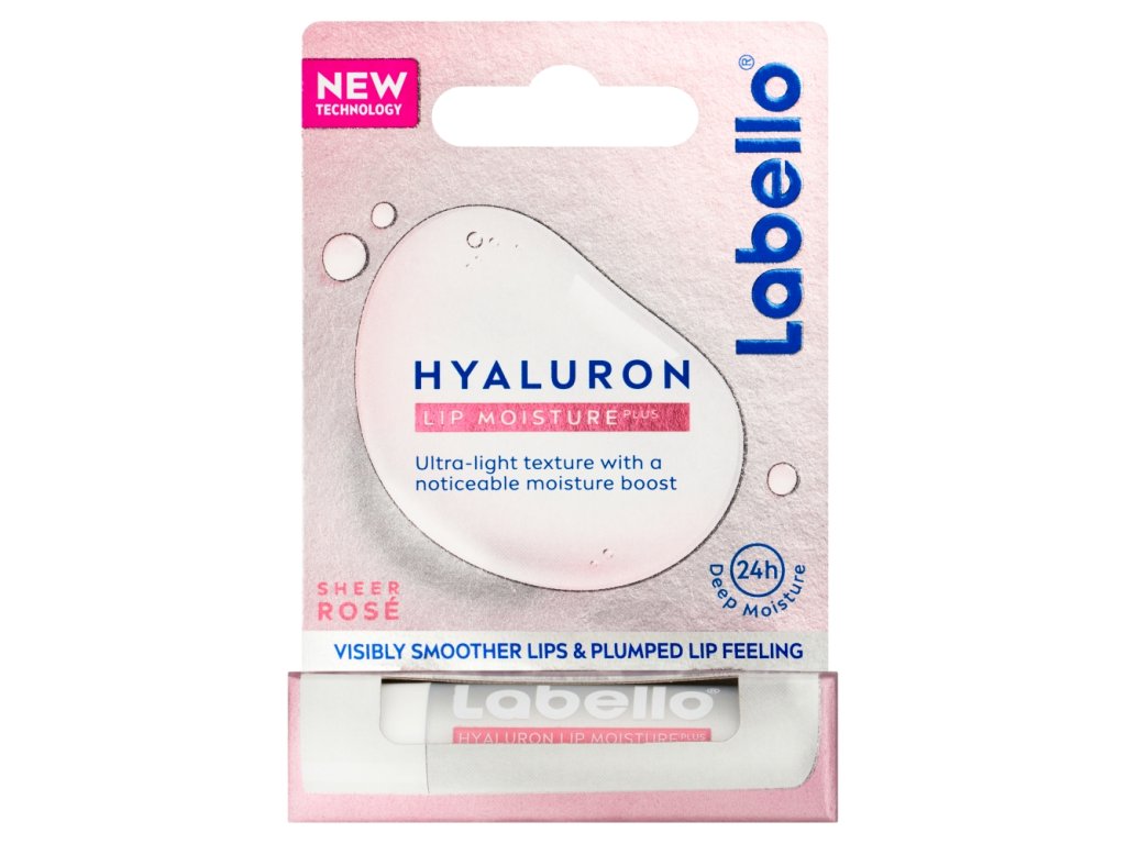 Labello Hyaluron Rosé интензивно се грижи и хидратира, но същевременно не създава неприятно лепкаво усещане в устата. Вместо лепкаво усещане, приятна и ултралека текстура, с фин розов оттенък и плодов аромат. Съдържа 99% съставки от естествен произход и освен това е в стик, който е лесно рециклируем.