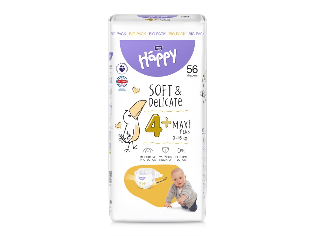 Bella HAPPY S&D размер 4+ Maxi Plus 9-15 кг Голяма опаковка 56 бр.