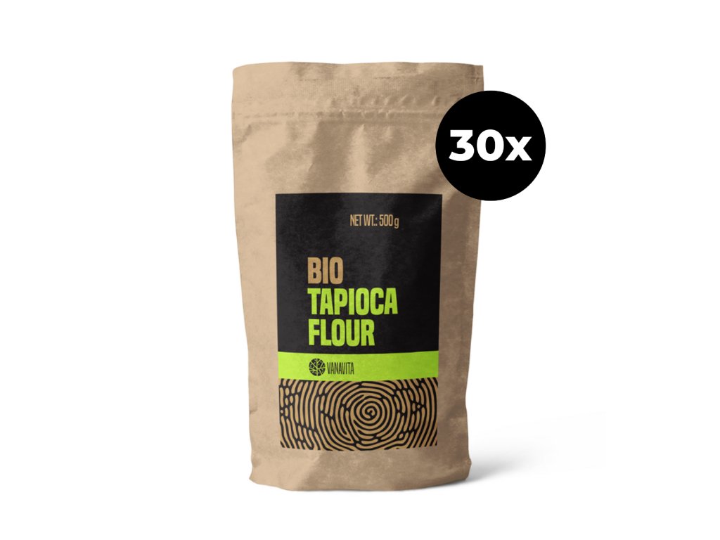 БИО брашното от тапиока е безглутенова алтернатива на класическото пшенично брашно. Може да се добавя към ястията ви от хора, които избягват глутен, както и от вегани. То е от чисто растителен произход. Представлява нишесте , което се получава от грудките на касава (Manihot esculenta). Произвежда се от нишестената течност, получена от корена на касавата. Водата в течността постепенно се изпарява, докато остане фин прах. След това се използва в следващите стъпки за създаване на брашно от тапиока. Има относително неутрален вкус, така че може да се използва перфектно като сгъстител за сосове. Въпреки това, ще свърши чудесна работа и при приготвянето на фитнес десерти.