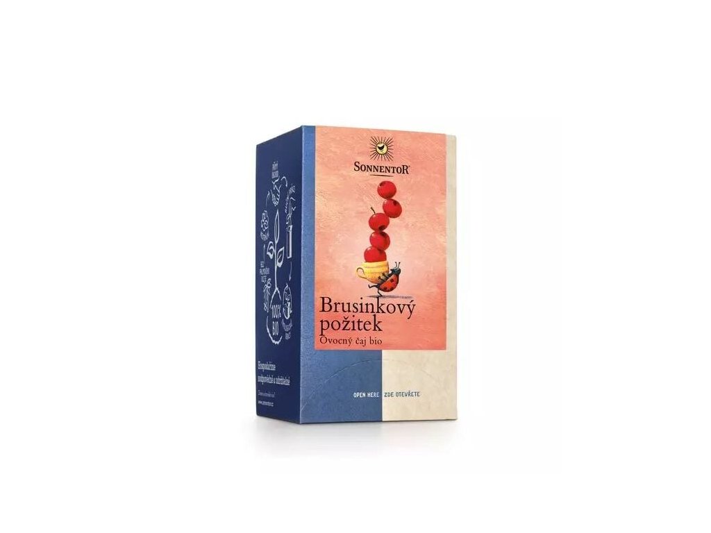 БИО чайът „Наслада от червена боровинка“ е вкусна чаена смес в практични пакетчета , която се откроява със съдържанието си на червена боровинка. Самите червени боровинки са допълнени от парченца ябълка, шипки, хибискус и портокалова кора.