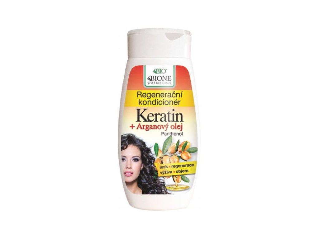 Keratinový hydrolyzát z ovčí Vlny obsahuje Aminokyseliny shodné s Aminokyselinami lidských vlasů. Používáním kondicionéru Keratin dochází k doplnění vlasové struktury narušené slunečním zářením, barvením, trvalou ondulací, fénováním, odbarvováním a stárnutím. Vlasy se zpevní, vrátí se jejich pružnost a lesk, netřepí se. Kondicionér je doplněn o regenerační panthenol a o rostlinný Lecithin. Lesk a hladkost vlasů jsou podpořeny přídavkem vzácného Arganového oleje.