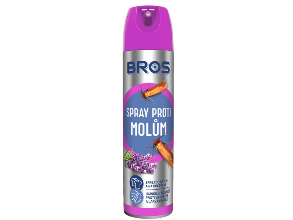 Aerosol účinně ničí nejen moly samotné, ale i jejich vajíčka a larvy v šatnících, zásuvkách a skříních.