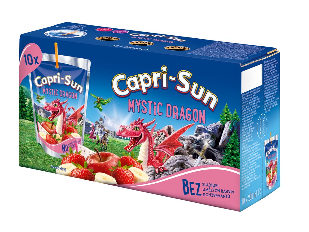 Capri-Sun ovocný nápoj s příchutí dračího ovoce. V balení naleznete 10 pitíček o objemu 200 ml.