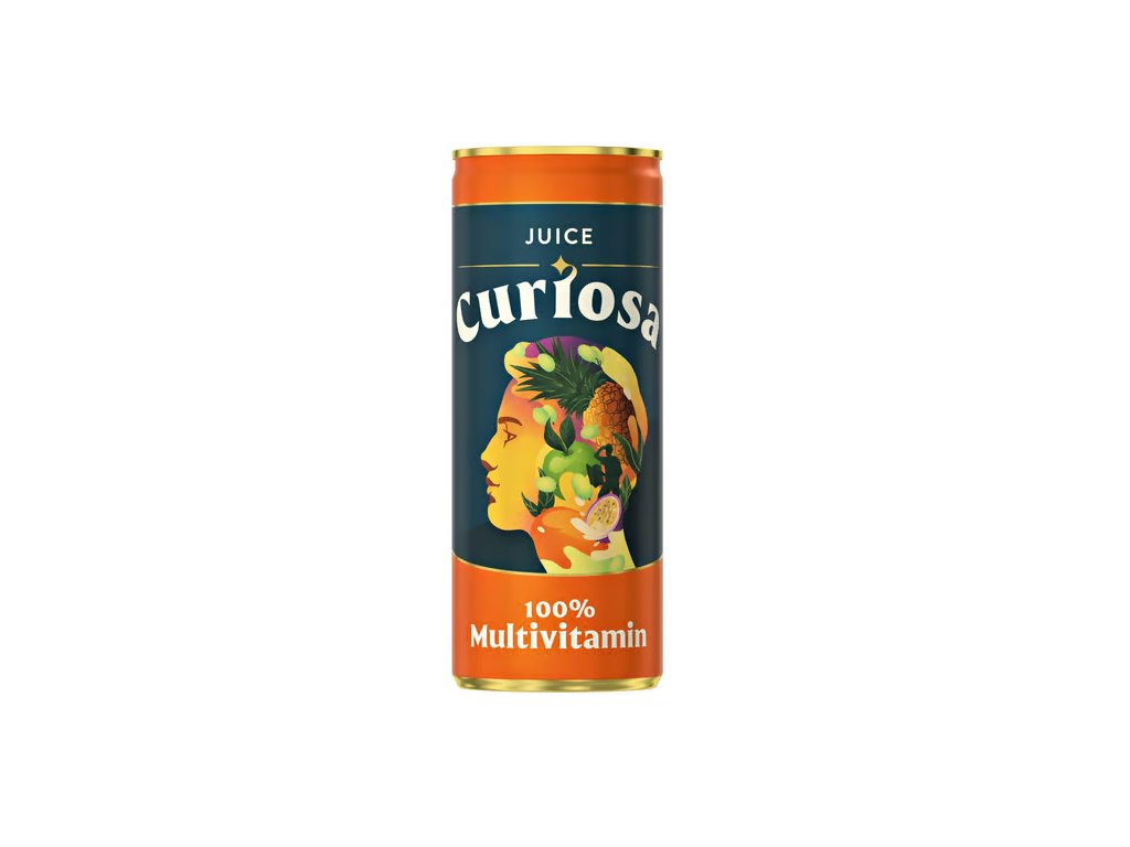 Curiosa Multivitamin 100% 0,33 l plech je přírodní ovocná šťáva vyrobená ze 100% ovocných koncentrátů bez přidaného cukru, barviv či konzervantů. Nabízí osvěžující mix vitamínů a chutí z několika druhů ovoce, který podpoří vaši energii a zdraví během dne. Praktické plechové balení je ideální na cesty i do práce.