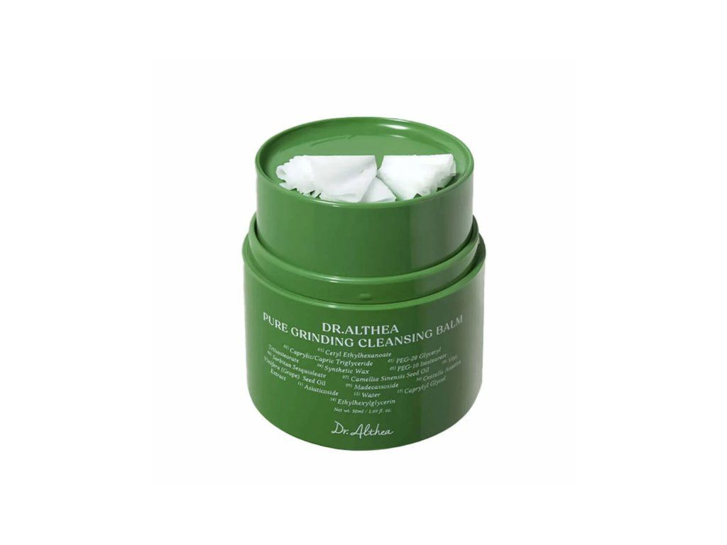 Д-р Алтеа - Pure Grinding Cleansing Balm - балсам за премахване на грим, подходящ за всички типове кожа, с минималистичен състав и висока ефективност. Съдържа внимателно подбрани вещества, които надеждно разтварят грима, SPF филтрите и други замърсявания. Основата е от зелен чай и масло от гроздови семки, които ефективно почистват кожата, предотвратяват изсушаването ѝ и я оставят мека и подхранена след изплакване. Наличието на екстракт от азиатски пъп, заедно с мадекасозид и азиатикозид, подпомага регенерацията на епидермиса и успокоява раздразненията. Балсамът се съхранява в хигиенична опаковка, която е необходимо да се обърне, за да се смеси съдържанието - този начин на приложение повишава ефективността на продукта. При контакт с топлината на кожата, балсамът се превръща в нежно почистващо масло. Съставът е изцяло веган.