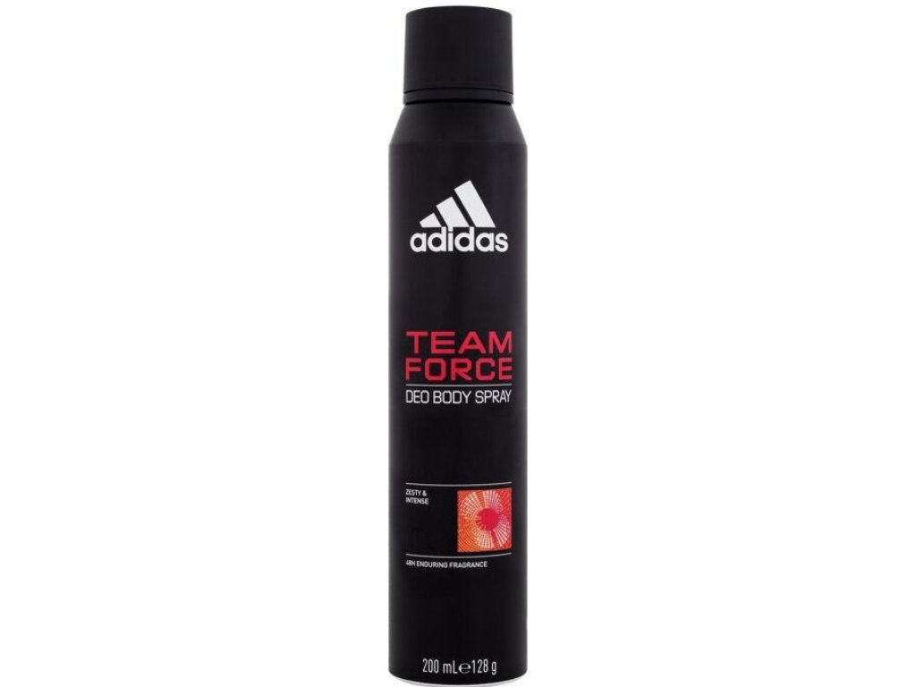 Adidas Team Force е модерен мъжки аромат, изпълнен със свежест и енергия. Интензивен цитрусов аромат, дълготрайна свежест, без алуминиеви соли. Не оставя следи по дрехите. Веган състав. Дерматологично тестван. Връхните нотки се открояват с плодов аромат на портокал, ананас, мандарина, грейпфрут и алдехиди. Средните нотки са омекотени от колекция от хвойна и жасмин, наред с дразнещия аромат на сандалово дърво. Базата е облагородена с амбра, кедрово дърво и тютюн.