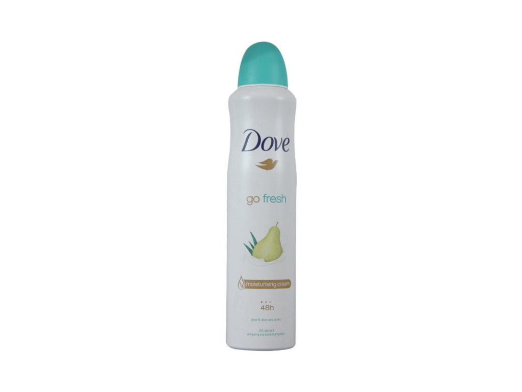Dove Pear & Aloe Vera je jemný antiperspirant ve spreji, který kombinuje účinnou ochranu proti pocení s příjemnou vůní šťavnaté hrušky a osvěžující aloe vera. Poskytuje dlouhotrvající pocit svěžesti a péči o pokožku podpaží díky obsahu ¼ hydratačního krému.