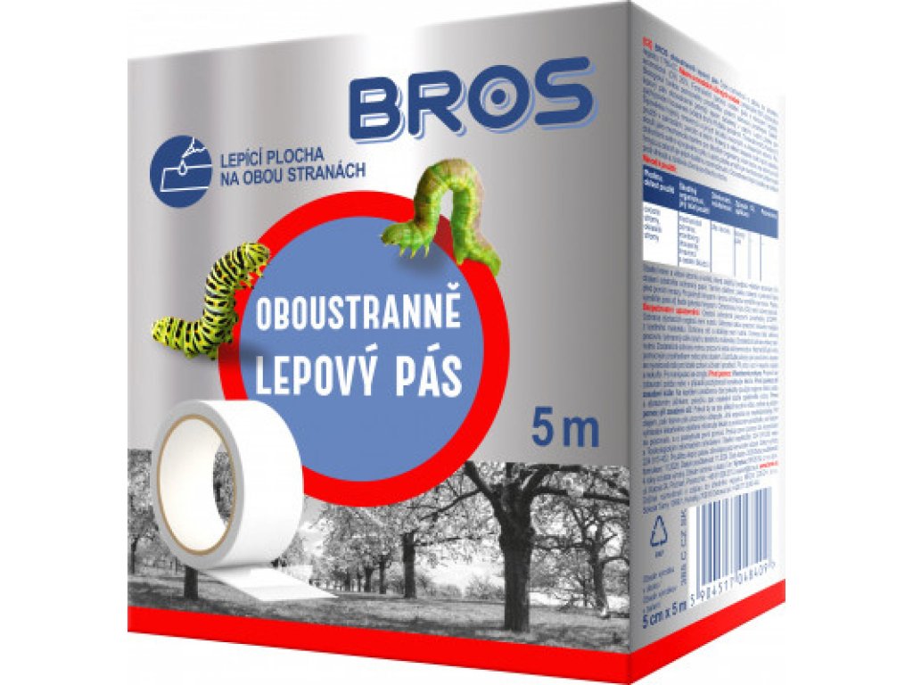 Двустранно залепващата лента BROS с дължина 5 метра е ефективно средство в борбата с насекомите, живеещи по декоративните и овощните дървета. Тази механична бариера, без използването на химикали, ефективно улавя вредители като гъсеници, мравки и други насекоми, които застрашават здравето на дърветата. Освен това, лентата позволява лесно откриване и оценка на популацията на насекомите.