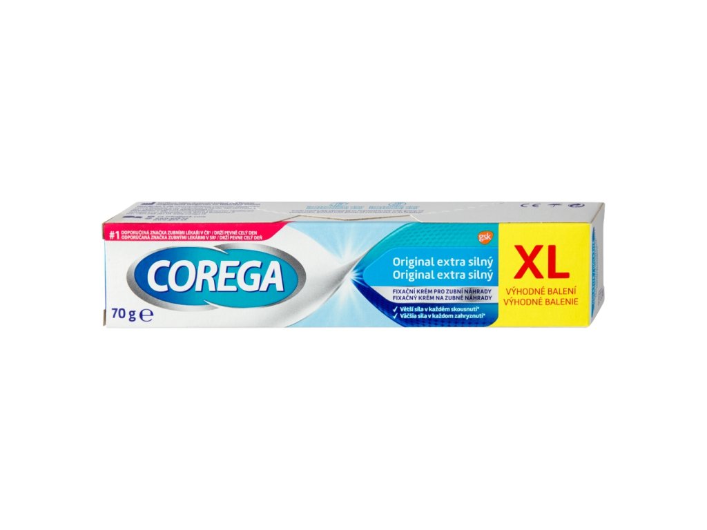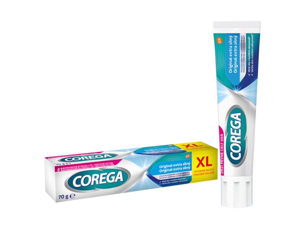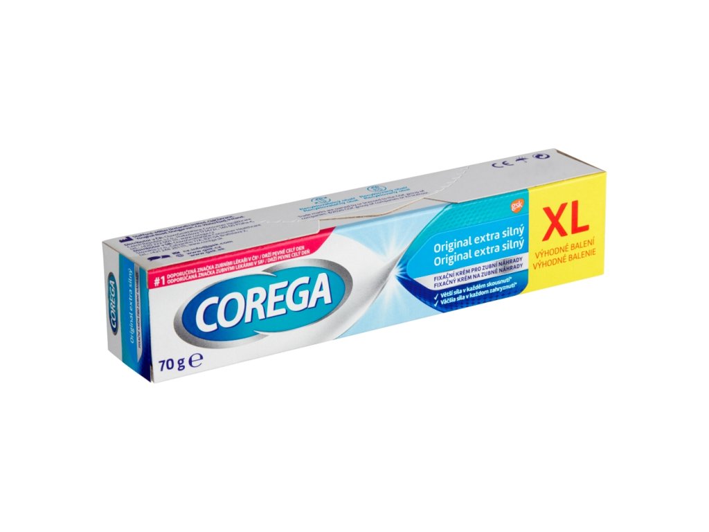 Кремът за екстра силно фиксиране COREGA® осигурява надеждно фиксиране на вашите протези през целия ден. Дори ако протезите ви пасват добре, кремът Corega ги запечатва, предотвратявайки попадането на неприятни остатъци от храна под тях. Не съдържа изкуствени оцветители или ароматизатори, които биха могли да повлияят на вкуса на храната. Практичната форма на гърлото на тубата позволява по-прецизно дозиране и нанасяне на крема.