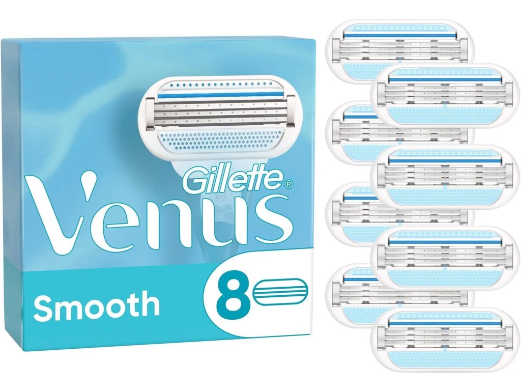 Náhradní hlavice k dámskému holicímu strojku Gillette Venus Smooth jsou prvními hlavicemi se 3 břity navrženými pro ženy. Mají 3 břity kopírující křivky těla, kolem nichž jsou ochranné polštářky uhlazující pokožku. Poskytují hladké a čisté oholení 1 tahem. Obsahují také modrý indikační proužek, který časem bledne, a tím vás informuje, že holení už není optimální.
