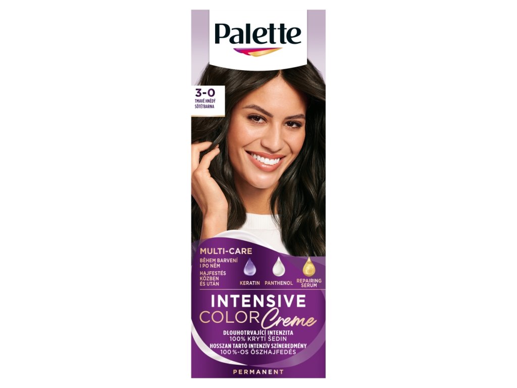 Vyzkoušejte NOVÉ Palette Intensive Color Creme s Ultimate Keratinem. Vaše oblíbená barva Vám nyní dodá dlouhotrvající, vysoce intenzivní barevný výsledek a zářivý lesk. Objevte Palette Intensive Color Creme s Ultimate Keratinem pro: dlouhotrvající intenzitu, maximální lesk barvy, zdravé a silné vlasy s péčí, až 100% krytí šedin a ochrana proti vymývání barvy.