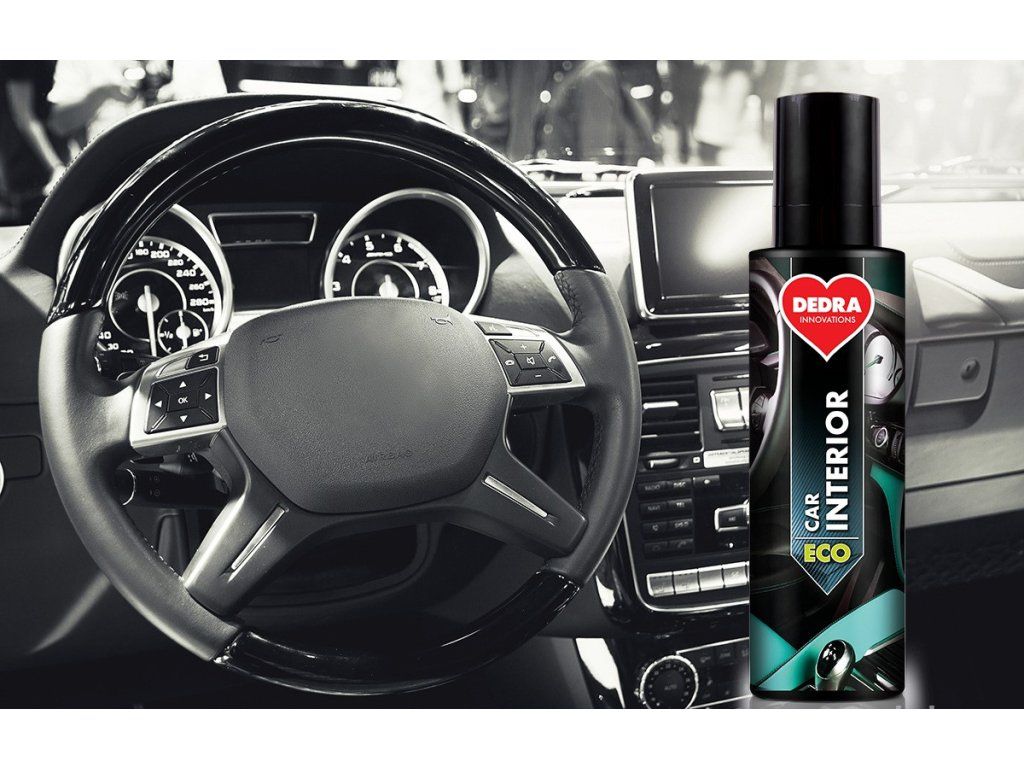 ECO препарат за почистване на интериор на автомобили с гланцов ефект и защита на повърхностите INTERIOR е интензивен почистващ препарат за пластмасови части от интериора на автомобила с ECO състав, който също така добавя висок гланц и защитава третираните повърхности. Възстановява външния вид на таблото, вътрешните страни на вратите и други гладки части. Основни предимства на продукта: Интензивно почиства пластмасовите и гладки повърхности от интериора на автомобила. Осигурява дълготраен блясък без мазен филм. Защитава третираните части от прах, UV лъчение и стареене. ЕКОЛОГИЧЕН СЪСТАВ - щадящ интериора и околната среда. Подходящ за всички видове пластмаси и синтетични материали. Употреба: Напръскайте директно върху повърхността или върху суха микрофибърна кърпа. Разнесете равномерно и почистете. Оставете да изсъхне и полирайте, ако е необходимо. Идеален за: Табла Вътрешни страни на врати Централни панели Други гладки и пластмасови части на интериораДопълнителни параметри