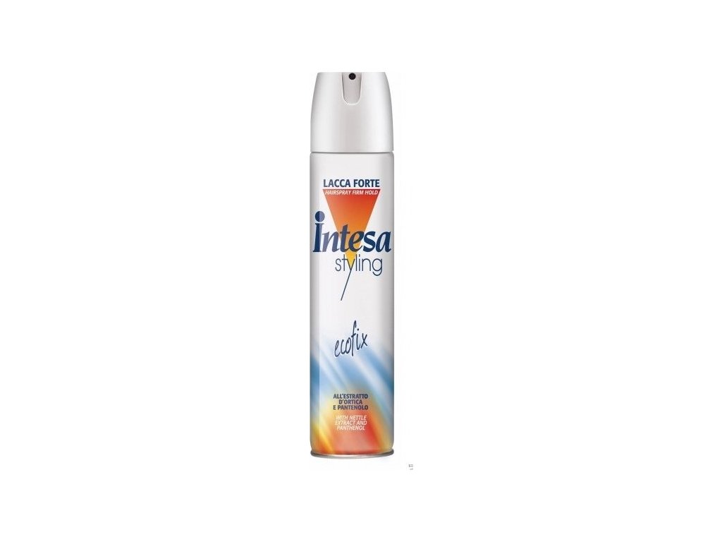 Intesa Styling Hair Spray Forte silně tužící lak na vlasy s výtažkem z kopřivy a s panthenolem. Tento kadeřnický lak na vlasy má speciální složení vynalezené k přirozené fixaci jakéhokoli typu účesu, kterému zaručí přirozený tvar a trvanlivost, díky výtažku z kopřivy a panthenolu, které jsou základními produkty v péči o vlasové vlákno. Respektuje přirozenost vlasů, aniž by je vysušil zanechává vlasy hedvábné a lesklé. Snižuje maštění vlasů. Lehce vyčesatelný hřebenem.