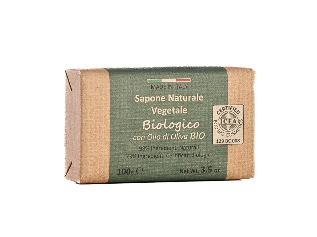 BIO organické rostlinné mýdlo s olivovým olejem BIO organické rostlinné mýdlo s certifikátem ICEA. Vhodné pro všechny typy pleti. 98 % přírodních složek 74 % složek s certifikátem BIO Papír s certifikátem FSC (Forest Stewardship Council), přírodní potisk.Допълнителни параметри