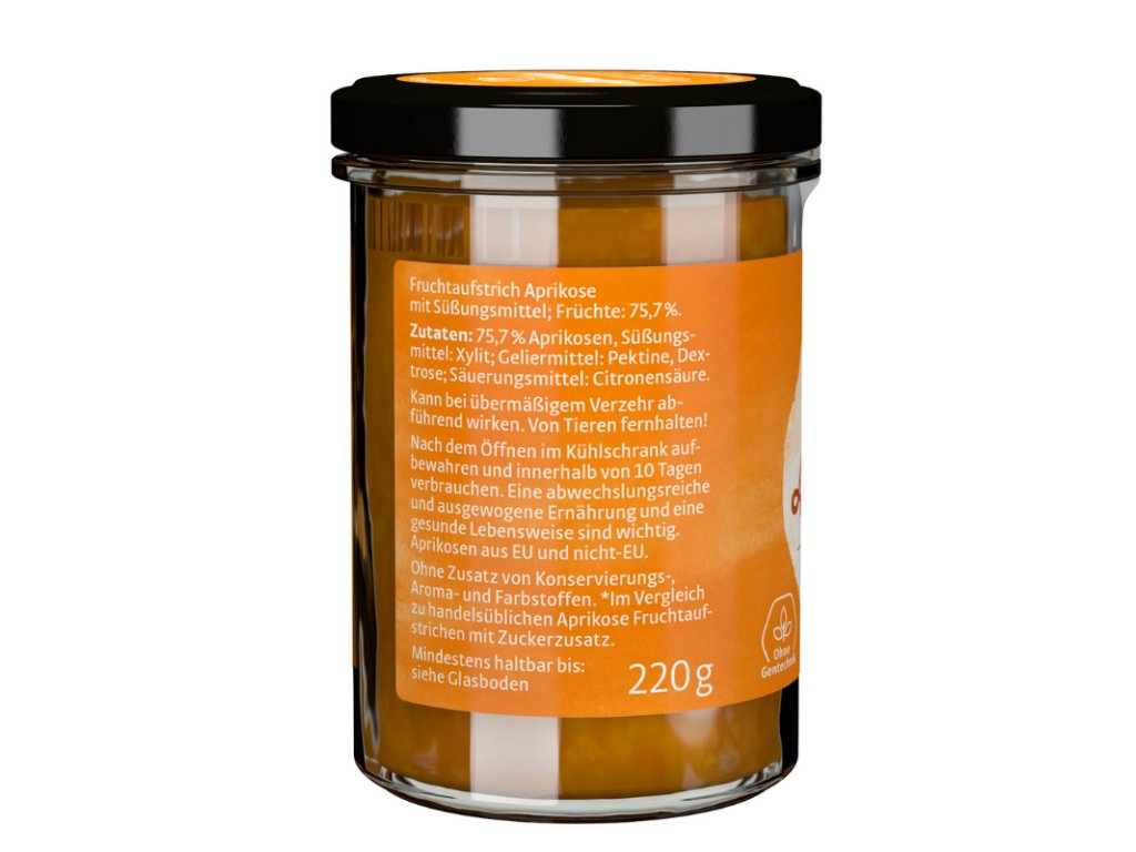 Кайсии (75,7%), подсладител: ксилитол; желиращи агенти: пектин, декстроза, подкислител: лимонена киселина.