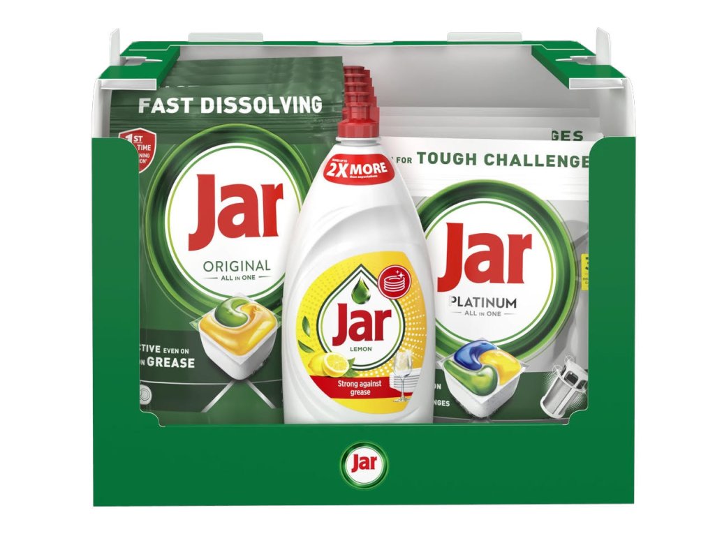 Картонена кутия, буркан, микс (таблетки за съдомиялна машина 4x46 бр., таблетки за съдомиялна машина Platinum 4x35 бр., лимон 5x900 мл) + Vůně do myčky ZDARMA !