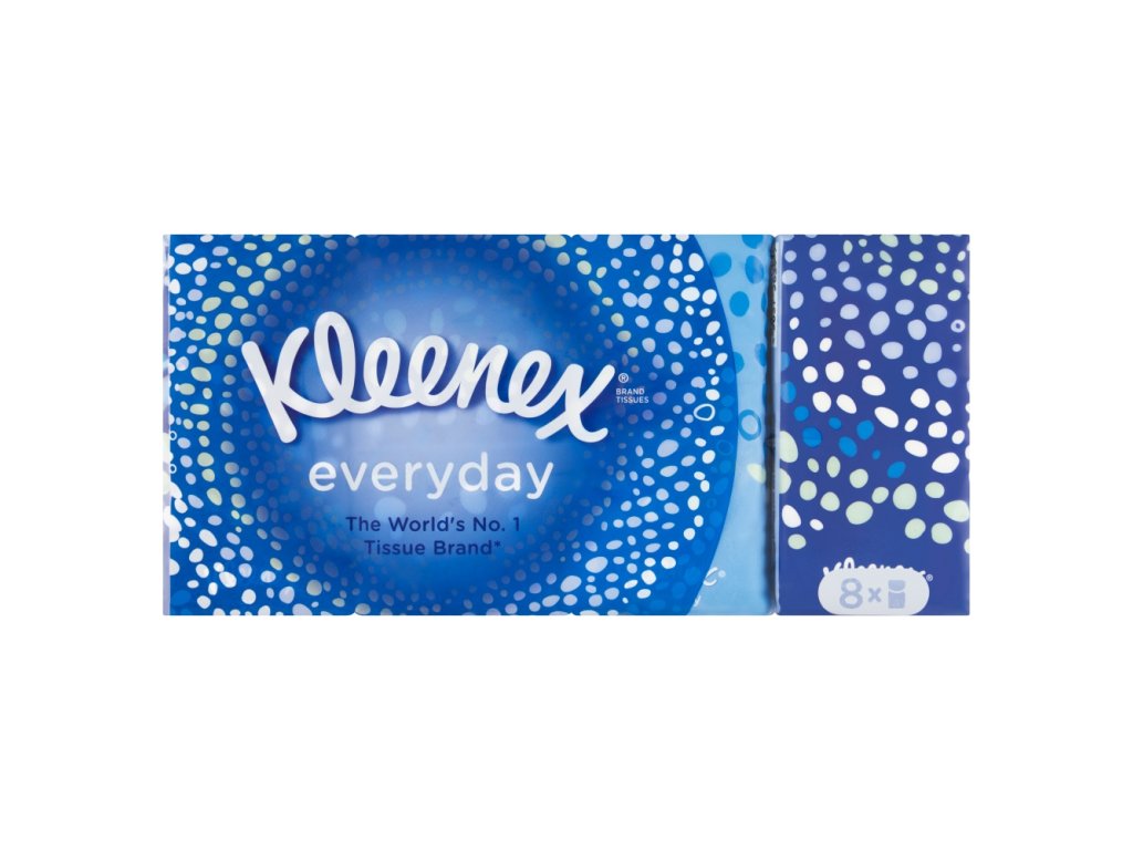Kleenex Everyday papírové kapesníky 8×9 ks (2 vrstvy) jsou dvouvrstvé kapesníky navržené pro každodenní použití. Každé balení obsahuje 8 jednotlivých balíčků, z nichž každý obsahuje 9 kapesníků, což činí celkem 72 kapesníků v jednom balení