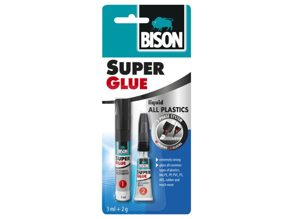 Лепило за пластмаса BISON SUPER GLUE Всички пластмасови 3 мл + 2 г