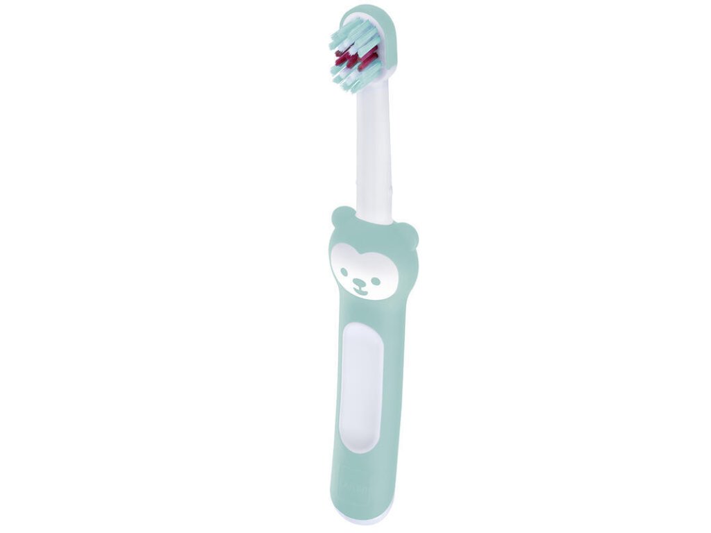 Podporuje samostatné čištění zoubků Dětský kartáček na zuby MAM Baby’s Brush byl vyvinut s lékařskými odborníky a lze jej používat již od 1. zoubku. Měkké, zaoblené štětiny čistí první zoubky a odstraňují plak a bakterie. Červené štětinky označují doporučené množství zubní pasty. Zaoblená hlava kartáčku je perfektní pro malá dětská ústa. Krátká ergonomická rukojeť z protiskluzového materiálu je ideální k uchopení malýma dětskýma rukama a napodobování pohybů při čištění zubů dospělých. Děti se tak od počátku správně učí samostatnému čištění zubů. Bezpečnostní kryt pomáhá udržet kartáček v bezpečné vzdálenosti od zadní části úst dítěte.Допълнителни параметри