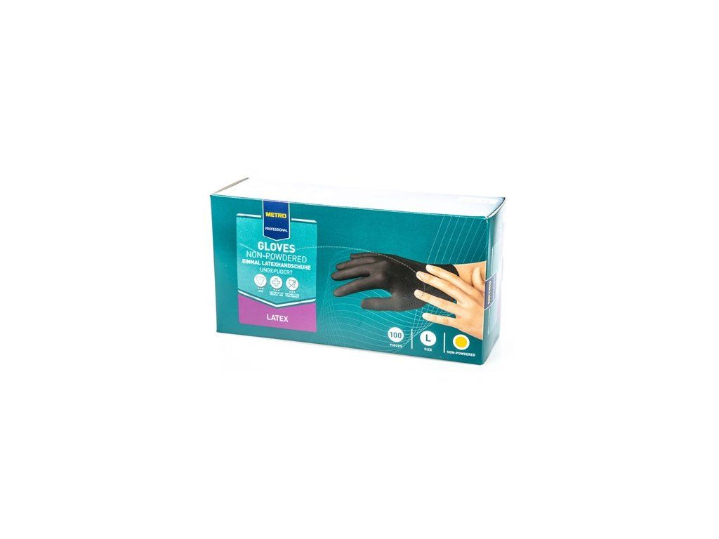 METRO PROFESSIONAL Латексови ръкавици без пудра, черни, размер L, 100 бр.