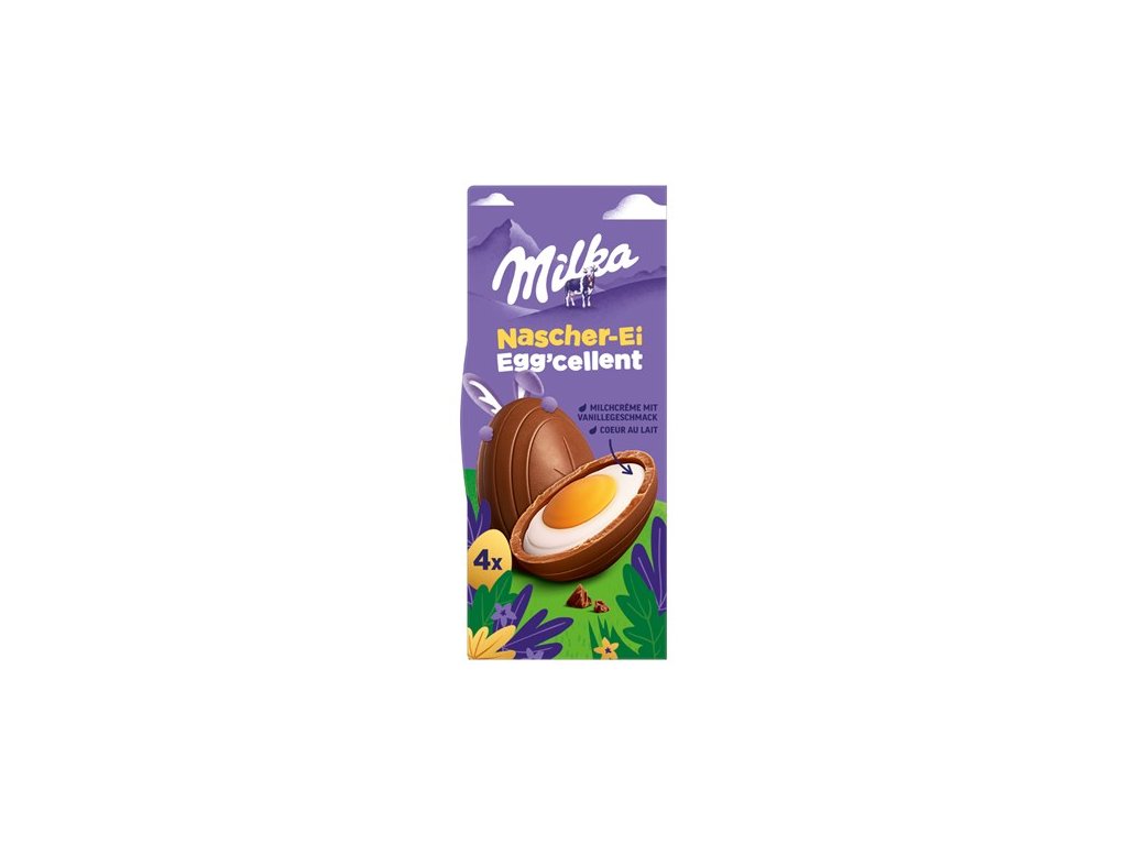Млечен шоколад, приготвен от алпийско мляко с млечен крем пълнеж (35%) с вкус на ванилия и пълнеж (12%) на базата на какаово масло.Допълнителни параметри