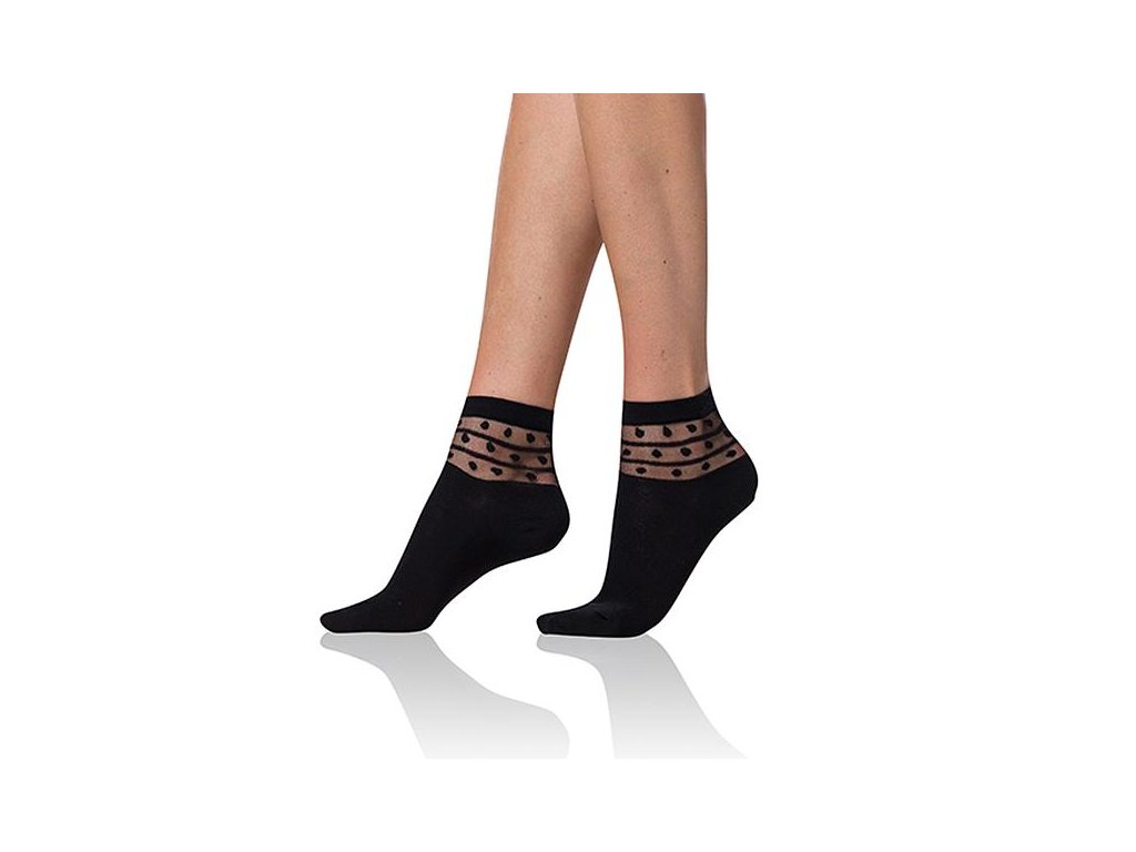 Velmi módní vzhled s puntíčky na lemu ponožky. Prodyšné a pohodlné díky bavlně s elastanem.Допълнителни параметри