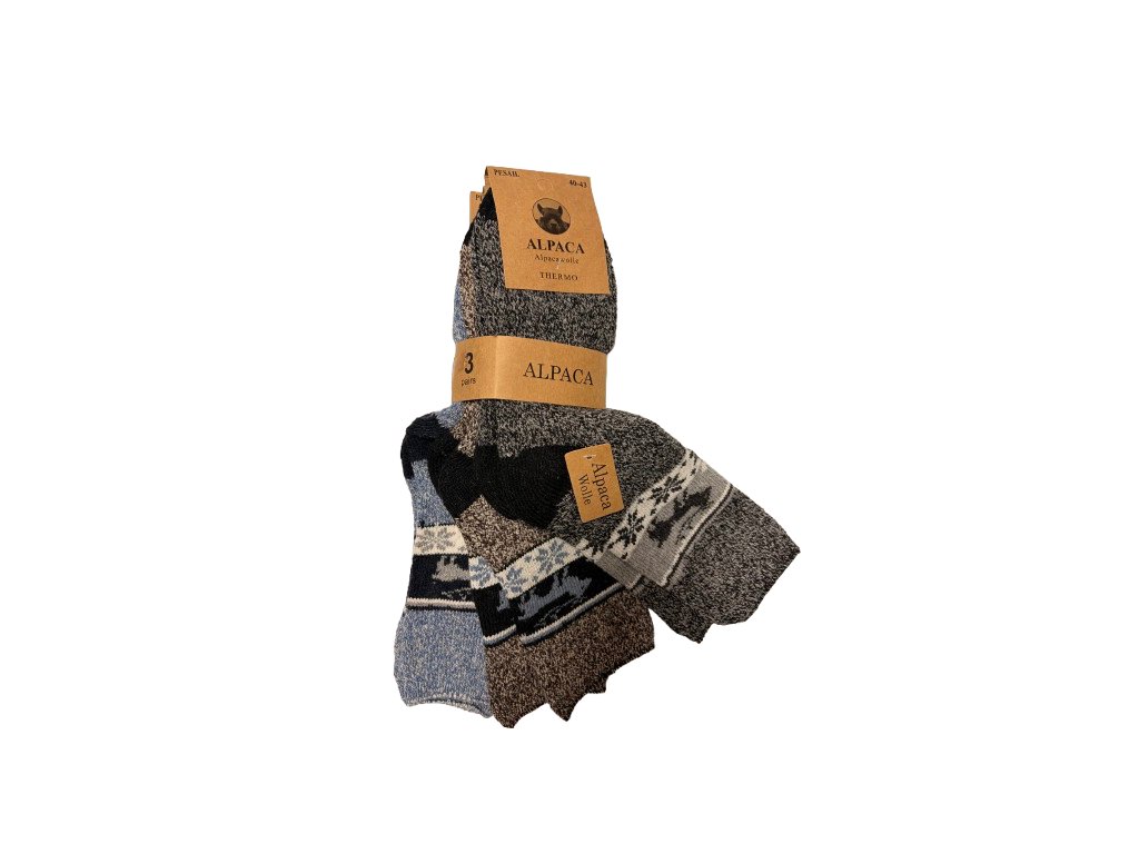 Мъжки топли шарени чорапи от алпака, 3 чифта, 44-47