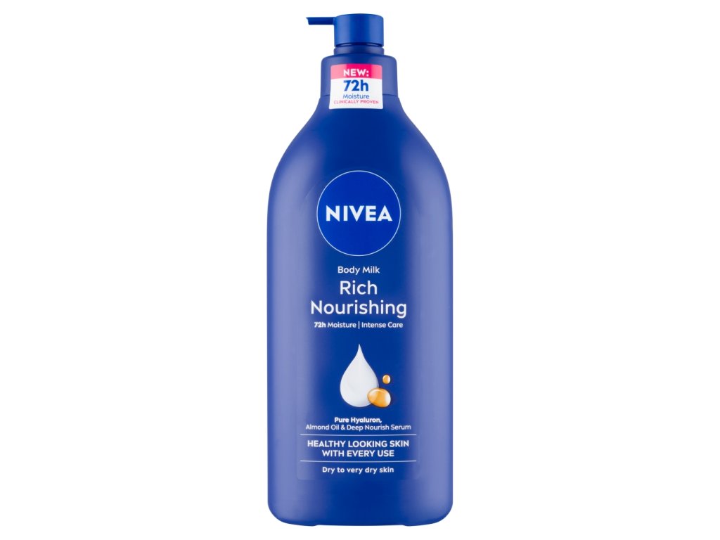 NIVEA výživné tělové mléko Body Milk Nourishing je kosmetický přípravek, který dodává i velmi suché pokožce dlouhodobou hydrataci a výživu. Lehké složení tohoto přípravku s obsahem vitamínu E, mandlovým olejem, přírodních minerálů a zvláčňujících látek redukuje hrubost pokožky a zlepšuje její cirkulaci vody. Mléko se lehce a okamžitě vstřebává a zanechá kůži dokonale vyživenou, hebkou a krásně voňavou.