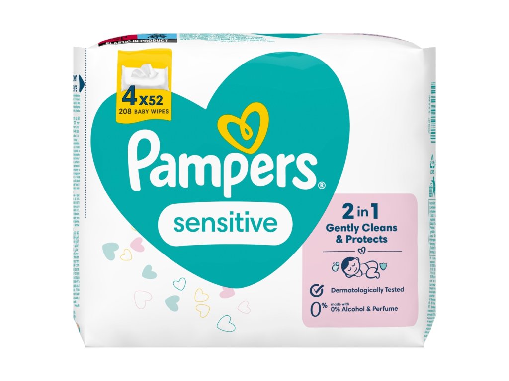 Pokožka vašeho děťátka je velmi citlivá a zaslouží si šetrné čištění již při výměně plenky. Čisticí ubrousky Pampers Sensitive nyní poskytují ještě šetrnější a lepší čištění (v porovnání s předchozím výrobkem) a díky jejich jemnější a pevnější struktuře pečují o citlivou pokožku vašeho děťátka ještě šetrněji. Enzymy v moči a ve stolici mění pH pokožky a zvyšují riziko podráždění a vyrážky. Všechny čisticí ubrousky Pampers mají jedinečné složení, které chrání přirozené pH pokožky lépe než žínka a voda, takže i ta nejcitlivější pokožka je čistá a chráněná před podrážděním. Čisticí ubrousky Pampers Sensitive jsou dermatologicky testované a schválené dermatology z organizace Skin Health Alliance. Vzhledem k tomu, že jsou čisticí ubrousky Pampers Sensitive navržené s ohledem na citlivou pokožku děťátek, neobsahují alkohol, parfemaci, barviva.
