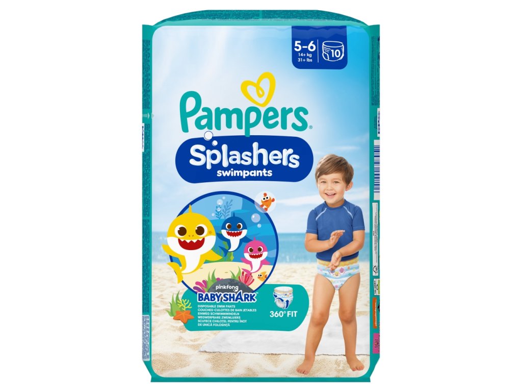 Vaše dítě může v jednorázových plenkových kalhotkách Pampers Splashers bezstarostně dovádět ve vodě. Plenkové kalhotky Pampers Splashers na rozdíl od běžných plenek ve vodě nenasáknou, takže vašemu dítěti pohodlně padnou, mokré i suché. Plenkové kalhotky Splashers mají dvojité lemy proti protečení, které poskytují ve vodě spolehlivou ochranu. Díky nim plenkové kalhotky pohodlně padnou kolem nožiček vašeho dítěte a pomohou zadržet nečistoty. Splashers jsou proto ideální plenkové kalhotky do bazénu, na pláž, do akvaparku apod. Pouze plenkové kalhotky Pampers Splashers mají po celém obvodu pružný pas, takže padnou jako plavky a snadno se oblékají i svlékají dokonce i za mokra. Boky plenkových kalhotek Pampers Splashers se dají snadno roztrhnout pro snadné svlékání bez nepořádku. Jsou potištěné obrázky na téma plavání, a díky tomu vypadají jako opravdové plavky. Díky Pampers Splashers si v bazénu užijete ještě víc legrace.
