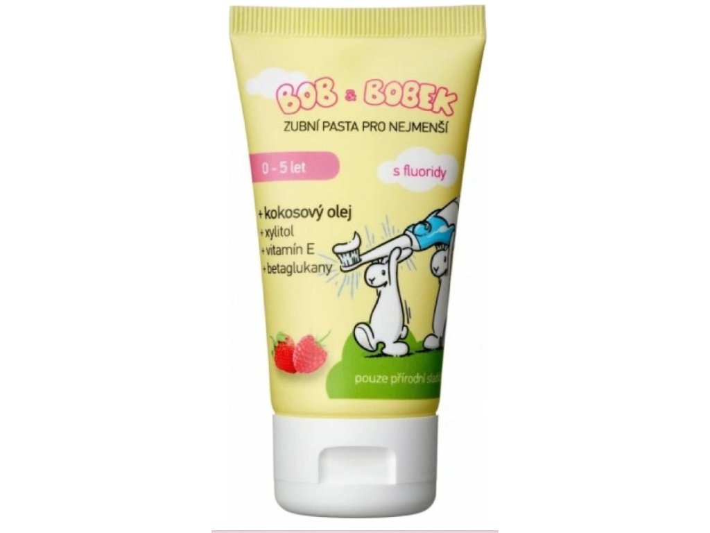 Bob a Bobek dětská zubní pasta s příchutí malin a jahod (0-5 let)Dětská zubní pasta pro péči o mléčné zoubky.