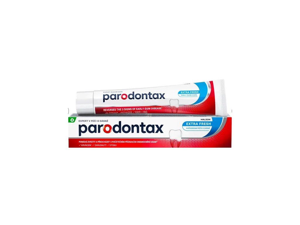 Parodontax Extra Fresh е паста за зъби, предназначена за ежедневна грижа за зъбите и венците. Благодарение на специалния си състав, тя спомага за ефективното премахване на зъбната плака и помага за спиране и предотвратяване на кървенето на венците. С редовно миене на зъбите два пъти дневно, тя поддържа оралното здраве и оставя дълготрайно усещане за свежест.