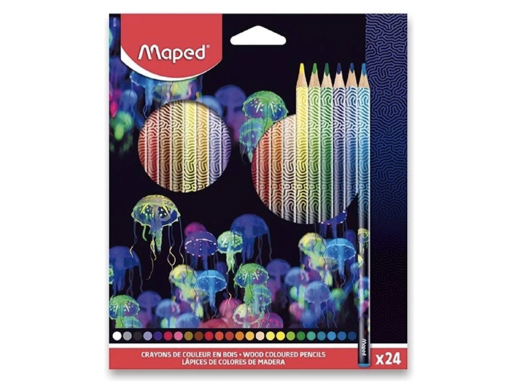 Pastelky Maped přenesou každého do světa barev a fantazie. Díky trojhrannému tvaru zajistí správný úchop zejména pro dětské ruce. Svým provedením budou vyhovovat pravákům i levákům. Jejich speciální ergonomický tvar nabízí správný úchop, a to zejména u malých dětí. Jsou určeny pro všechny od 7 let. Uvnitř těla pastelek je měkká tuha s průměrem 2,9 mm. Papírové balení zahrnuje 24 pastelek Maped.