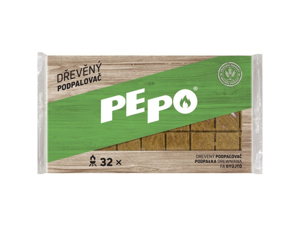 Přírodní podpalovač ve tvaru odlomitelných dílků obsahuje lisované dřevěné piliny napuštěné parafínem.