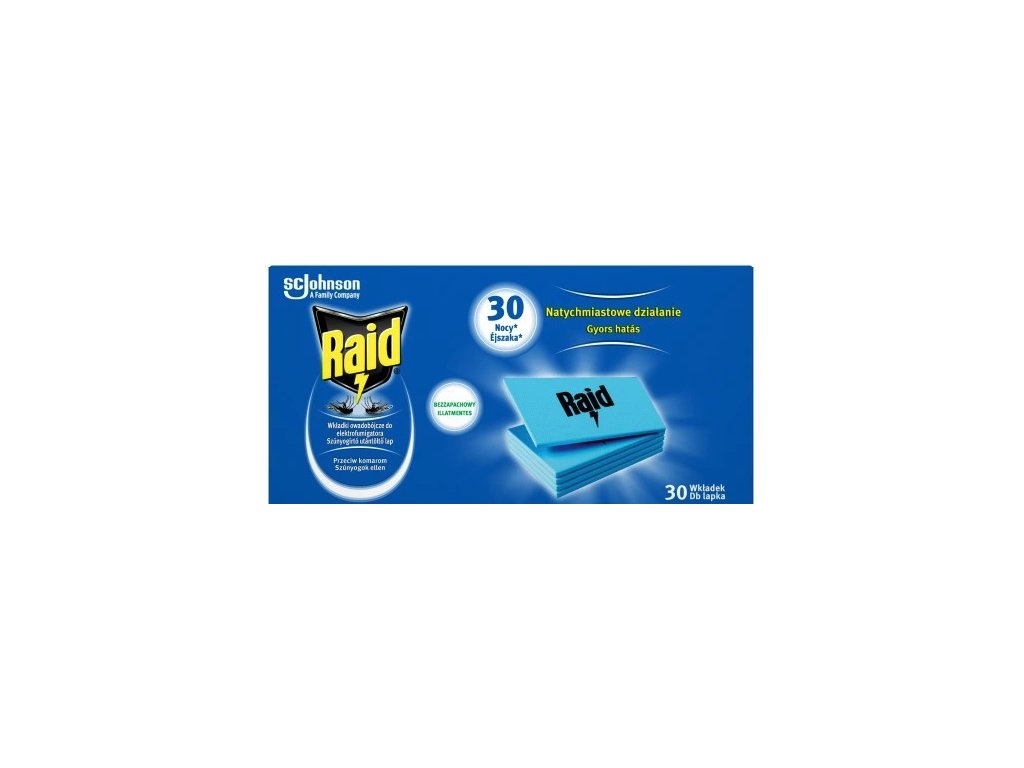 Пълнител за електрически изпарител Raid, високоефективен инсектицид 30 бр.