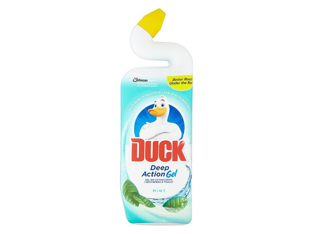 Duck tekutý čistič se svěží vůní máty je přípravek, který vyčistí WC mísu, odstraní vodní kámen a nečistoty, eliminuje zápach a osvěží. Praktické zakřivené hrdlo láhve snadno dosáhne pod obrubu WC mísy, kde se nejvíc vyskytují usazeniny a zanechává dlouhotrvající vůni.