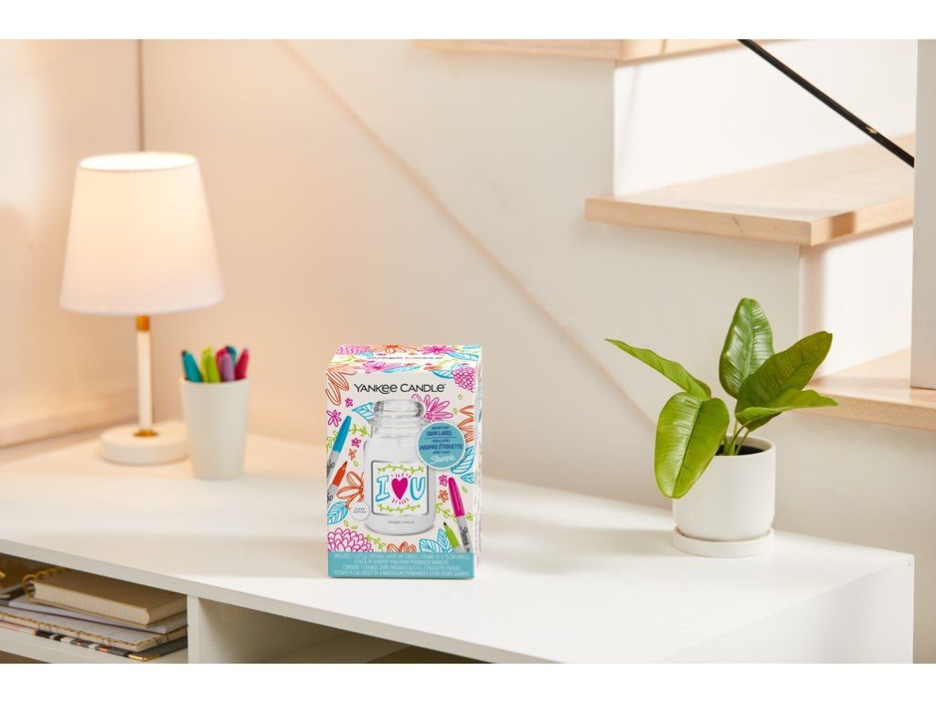 Можете да декорирате тази свещ по ваш вкус и да я подарите на някого като личен подарък. Създайте декларация в любов, благодарност или пожелание за рожден ден. В красива кутия с живи цветове ще намерите голяма свещ Classic Clean Cotton с популярния аромат на чист памук, която гори до 150 часа. Също така 2 бели етикета и комплект от 4 перманентни маркера Sharpie в красиви нюанси. Съхнат бързо, рисуват върху хартия, пластмаса и метал и са устойчиви на вода и избледняване. Благодарение на променливата дебелина на върха, можете лесно да рисувате дори детайли с тях. Изненадайте с оригинален подарък!Допълнителни параметри