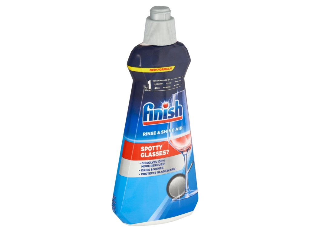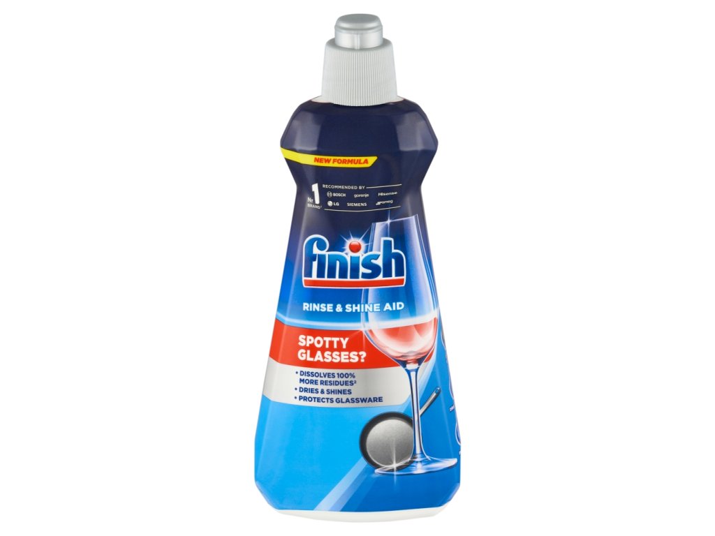 Finish leštidlo. Vaše myčka může zanechat nádobí mokré a ponechat skvrny na skle. Finish leštidlo poskytuje o 100 % lepší schnutí** vašeho nádobí a zabraňuje ulpívání kapek vody na skle. Jeho posílené složení chrání sklo před zašednutím a tím zajišťuje déle trvající zářivý lesk.
