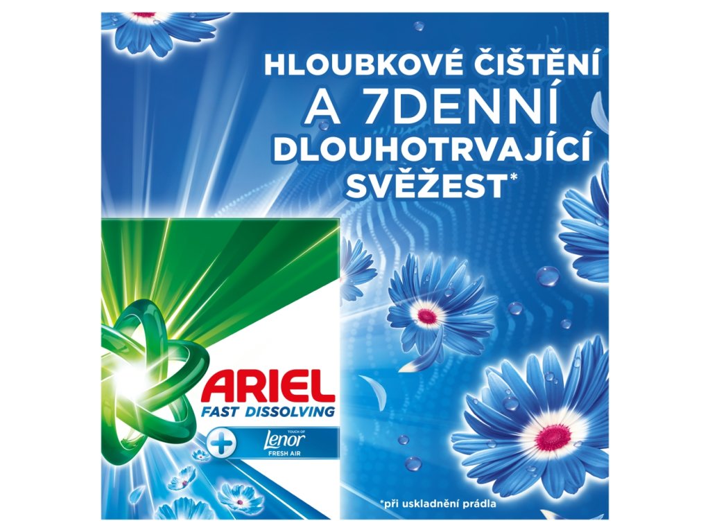 Ariel Touch of Lenor prací prášek odstraňuje i odolné skvrny díky tomu, že proniká hluboko do vláken. Zabraňuje tak fixování nečistot v tkanině. Odstraňuje také skvrny, které jsou příčinou zápachu.