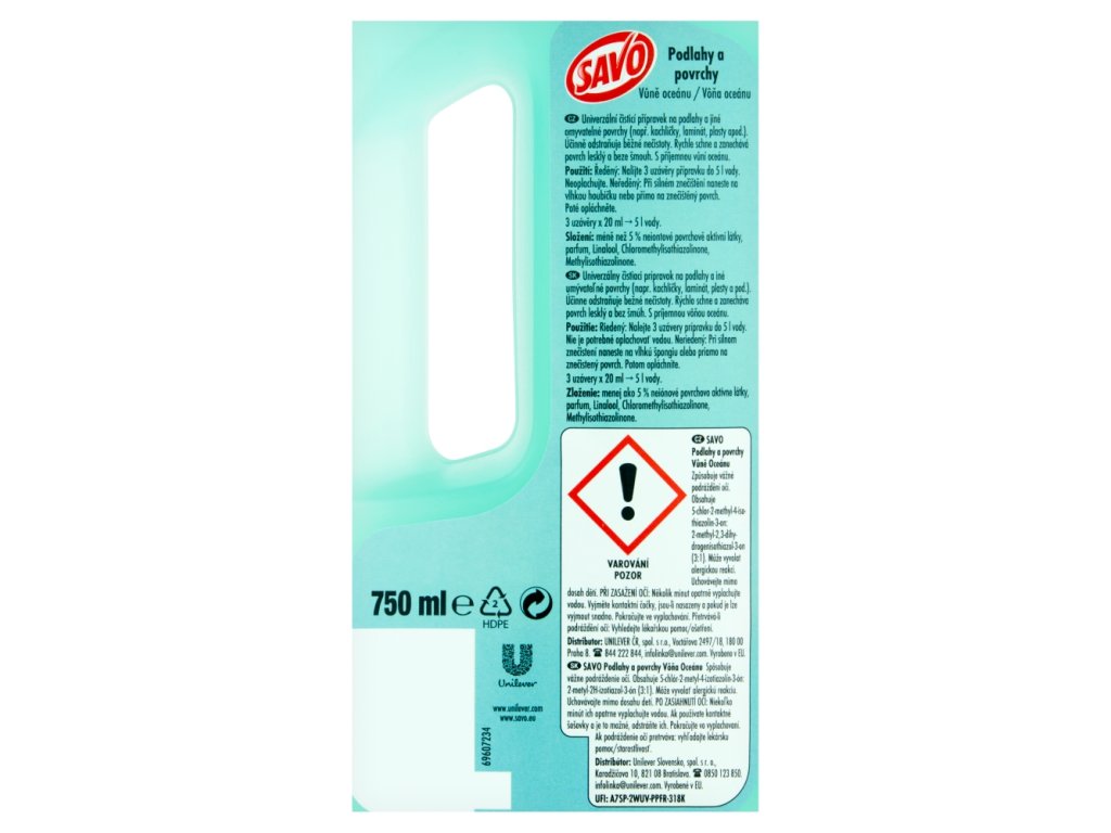 Препарат за подове и повърхности Savo 750 мл, цвят океан
