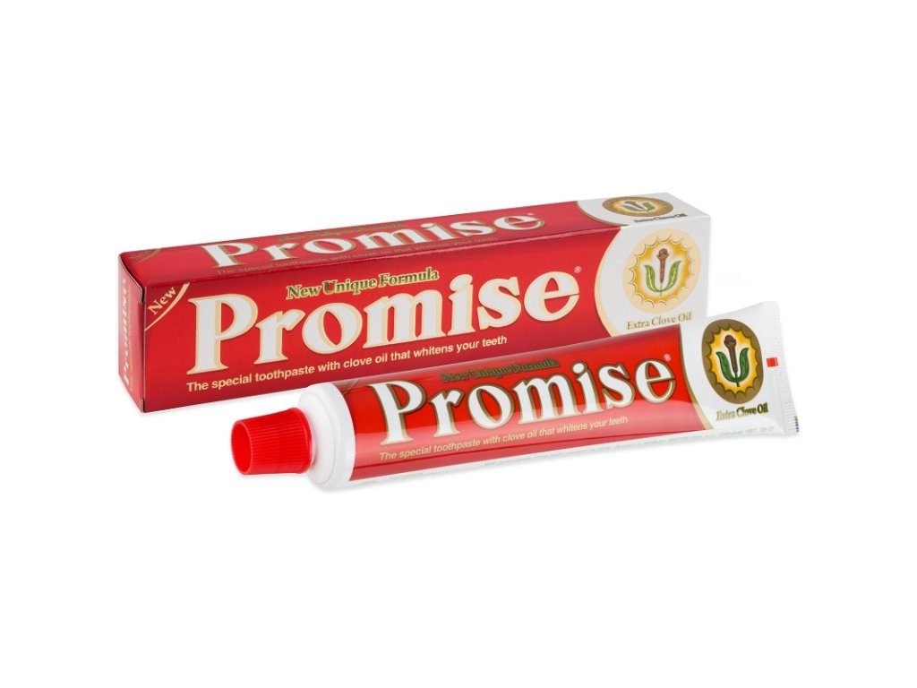 Posiluje dásně, působí hojivě, protizánětlivě a protibakteriálně. Zubní pasta Promise s hřebíčkovým olejem, speciální jemnozrnný prášek má bělící účinky a odstraňuje zubní povlak. Hřebíčkový olej vyniká svými hojivými a protizánětlivými účinky, je určená pro každodenní komplexní ochranu celé dutiny ústní.