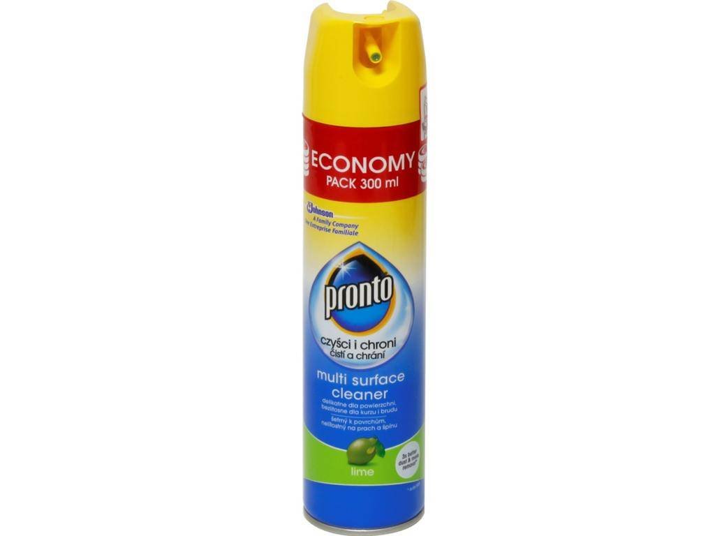 Pronto multifunkční sprej s vůní limetky dokonale odstraňuje prach, šmouhy a otisky. Obsahuje antistatické složky, které zabraňují opětovnému usazování prachu. Jemně čistí a odstraňuje prach z kovu, dřeva, skla a elektroniky (kromě plazmových/LCD obrazovek). Není vhodný pro použití na dřevo bez povrchové úpravy. Pronto poskytuje vašemu nábytku dokonalou péči a ochranu.