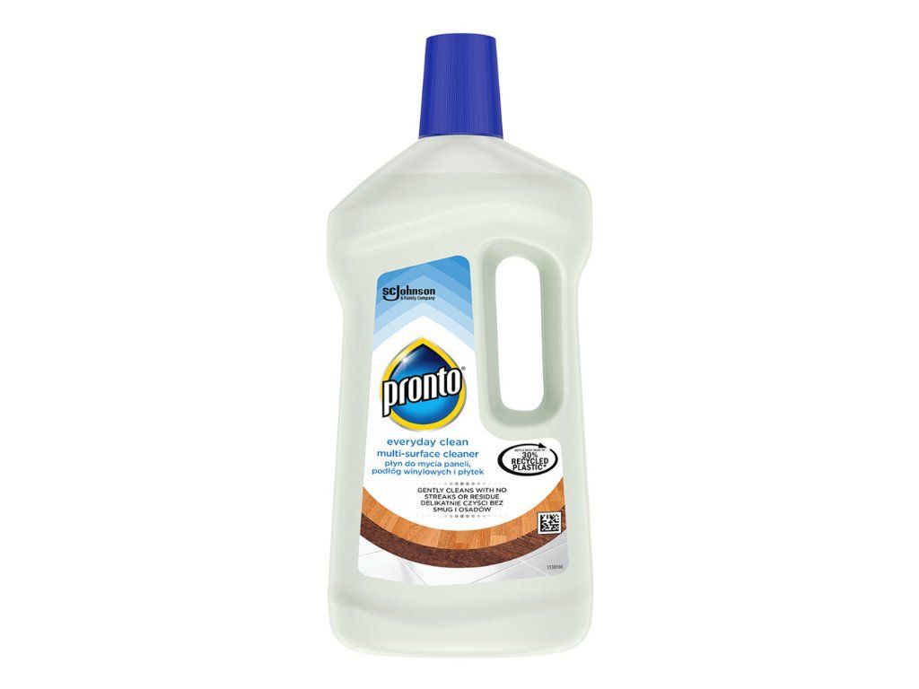 Pronto Everyday Clean за ламинат и винил 750 мл е почистващ препарат, предназначен за редовна поддръжка на твърди подови настилки в дома. Нежната формула ефективно премахва прах, обикновени замърсявания и мазнини, като същевременно помага подовете да останат свежи, чисти и без следи. Особено подходящ е за ламинирани и винилови подове, но може да се използва и върху плочки.