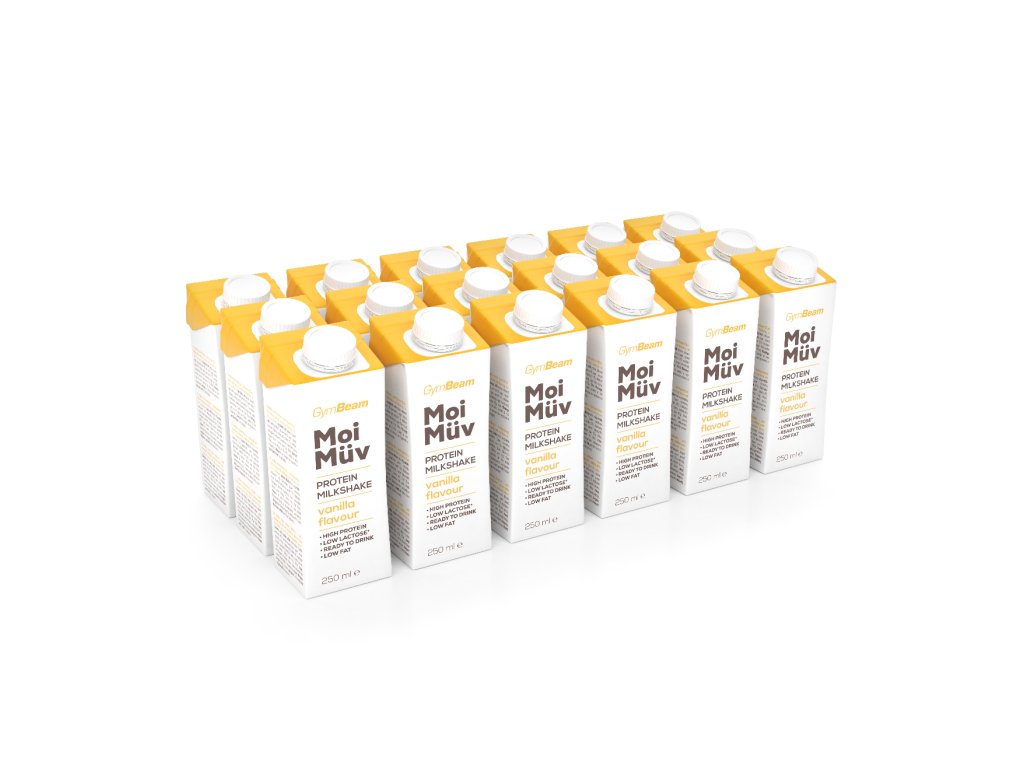 Протеиновият млечен шейк MoiMüv е кремообразна млечна напитка, която ще ви спечели със страхотни съставки и прекрасен вкус. Една опаковка от тази готова за пиене напитка съдържа 25 г протеин . Те подпомагат растежа и защитата на мускулната маса и поддържането на здрави кости . Това го прави идеален след тренировка, когато искате да подпомогнете мускулната регенерация. Всички силови спортисти също ще оценят ниското съдържание на мазнини в този продукт.