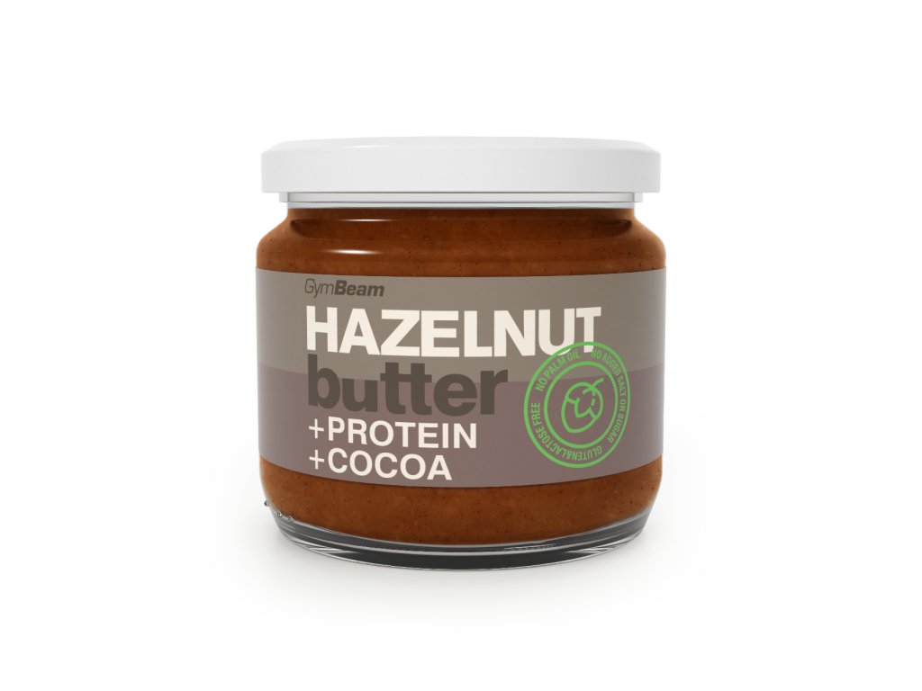 Лешници 80%, протеин GymBeam WPI 20% [ суроватъчен протеинов изолат, какао на прах с намалено съдържание на мазнини 4%, аромат, оцветител (амонячен карамел), подсладител (сукралоза), емулгатор (слънчогледов лецитин)].