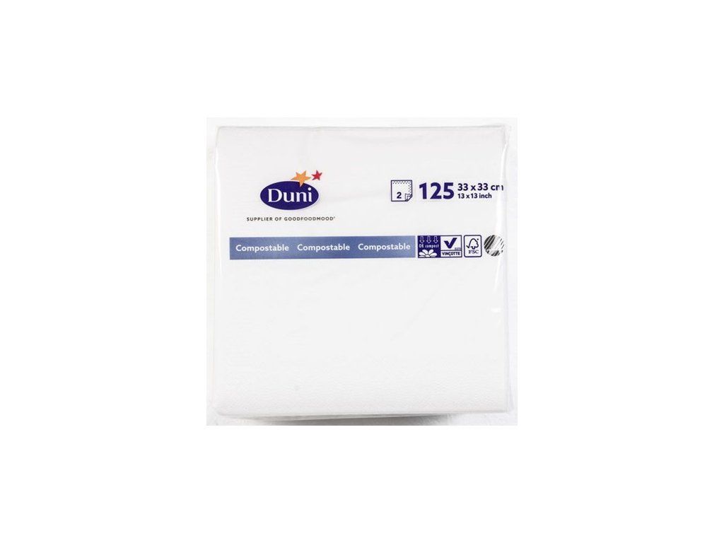 Салфетки Duni 33 см, двуслойни, бели, 125 бр.